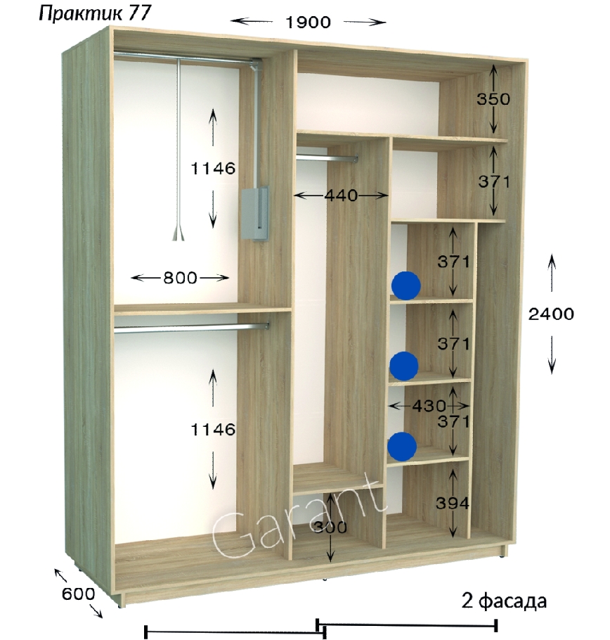 Шкаф-купе 1900*600*2400 Гарант Практик-77