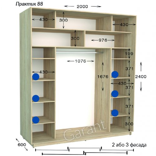 Шкаф-купе 2000*600*2400 Гарант Практик-88/3